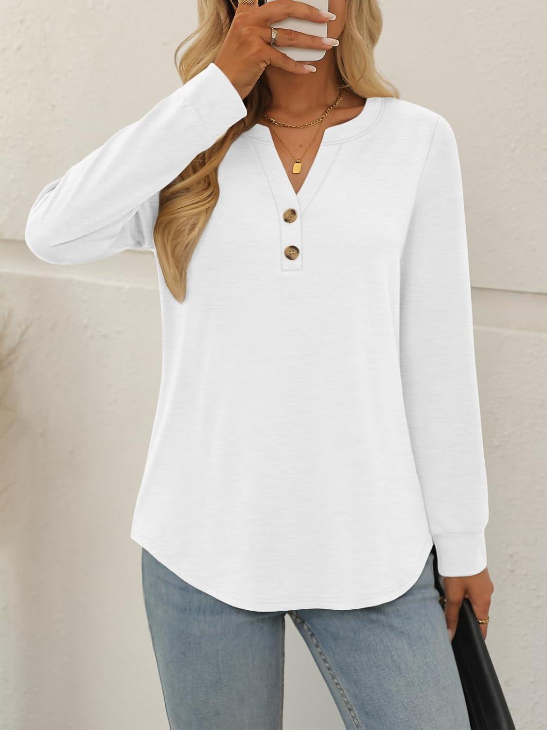 AUTOMET Womens Tops Long Sleeve Shirts Fall Fashion Clothes Henley Dressy Casual Blouses Trendy 2025(White)