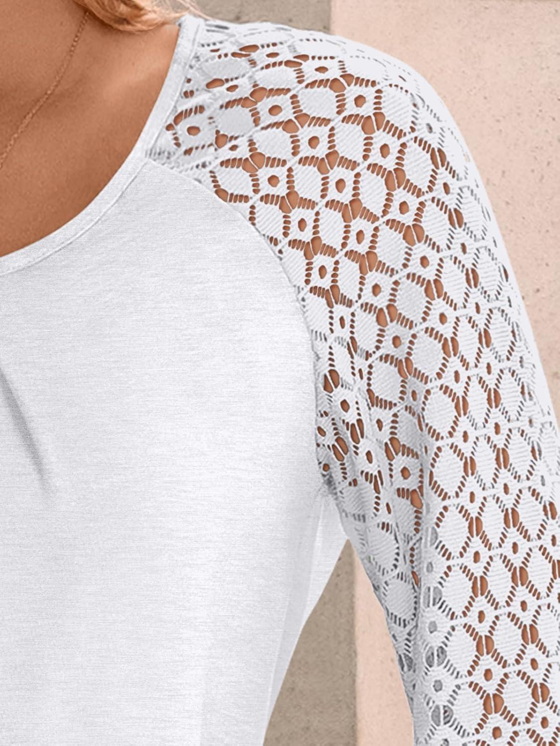AUTOMET Womens Tops Long Sleeve T-Shirts Lace Business Dressy Casual Blouses Fall Fashion 2025 Trendy Outfits Winter Clothes(White)