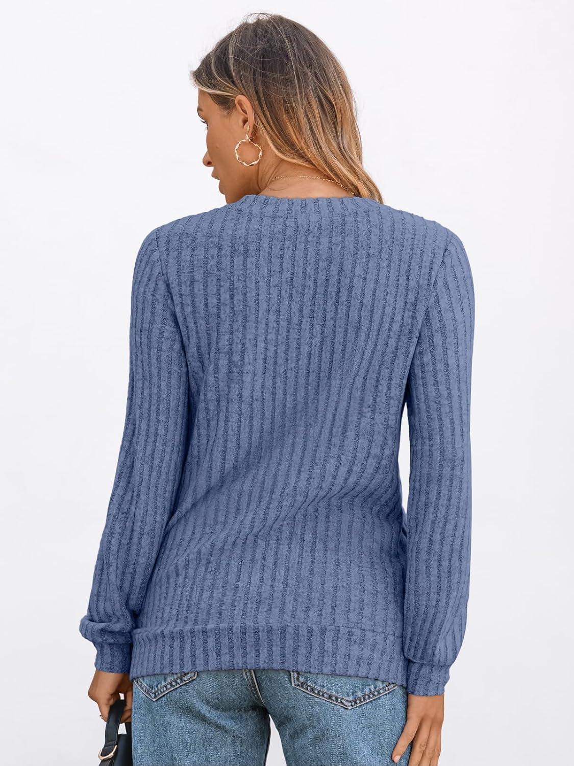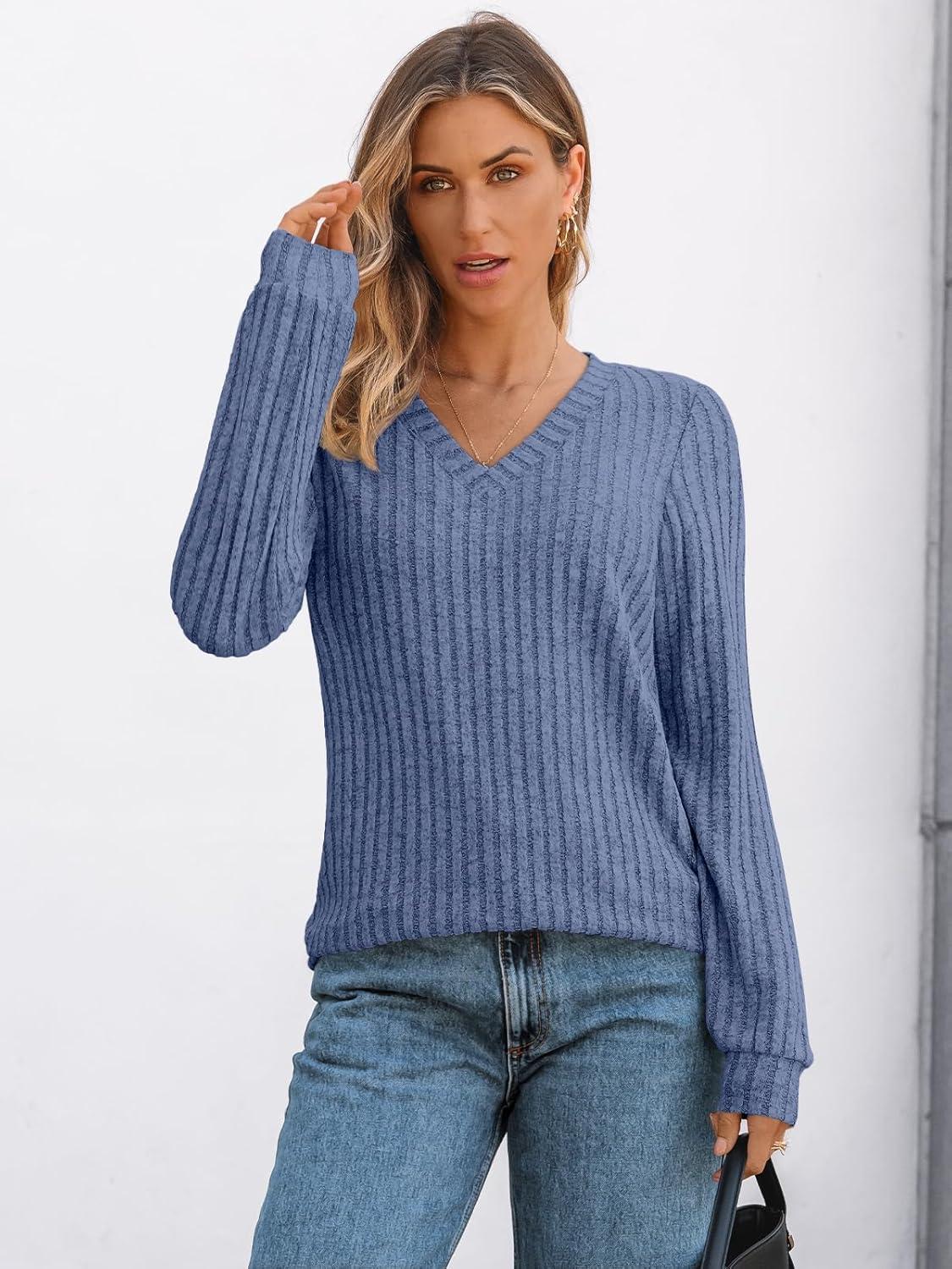 AUTOMET Womens V Neck Long Sleeve Shirt Fall Fashion Tops Tunic Dressy Casual Sweater Clothes Cute Trendy Work Outfits 2025(Blue)
