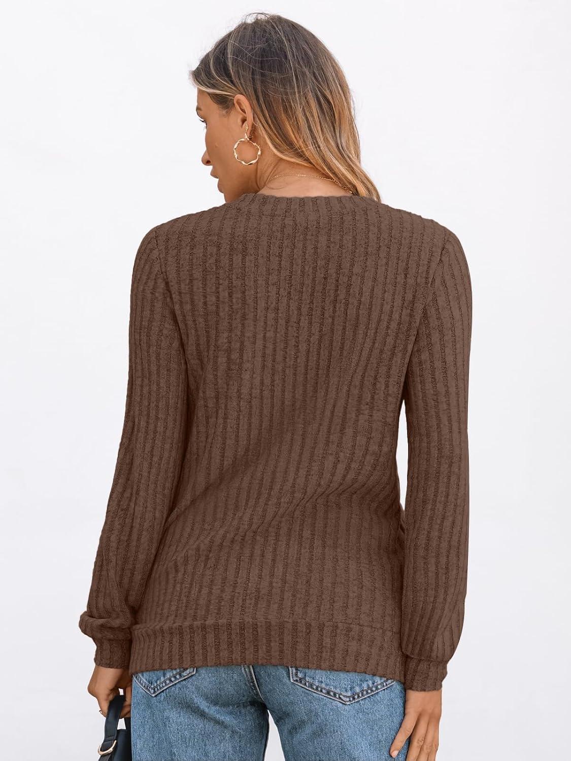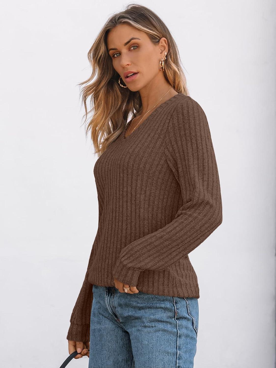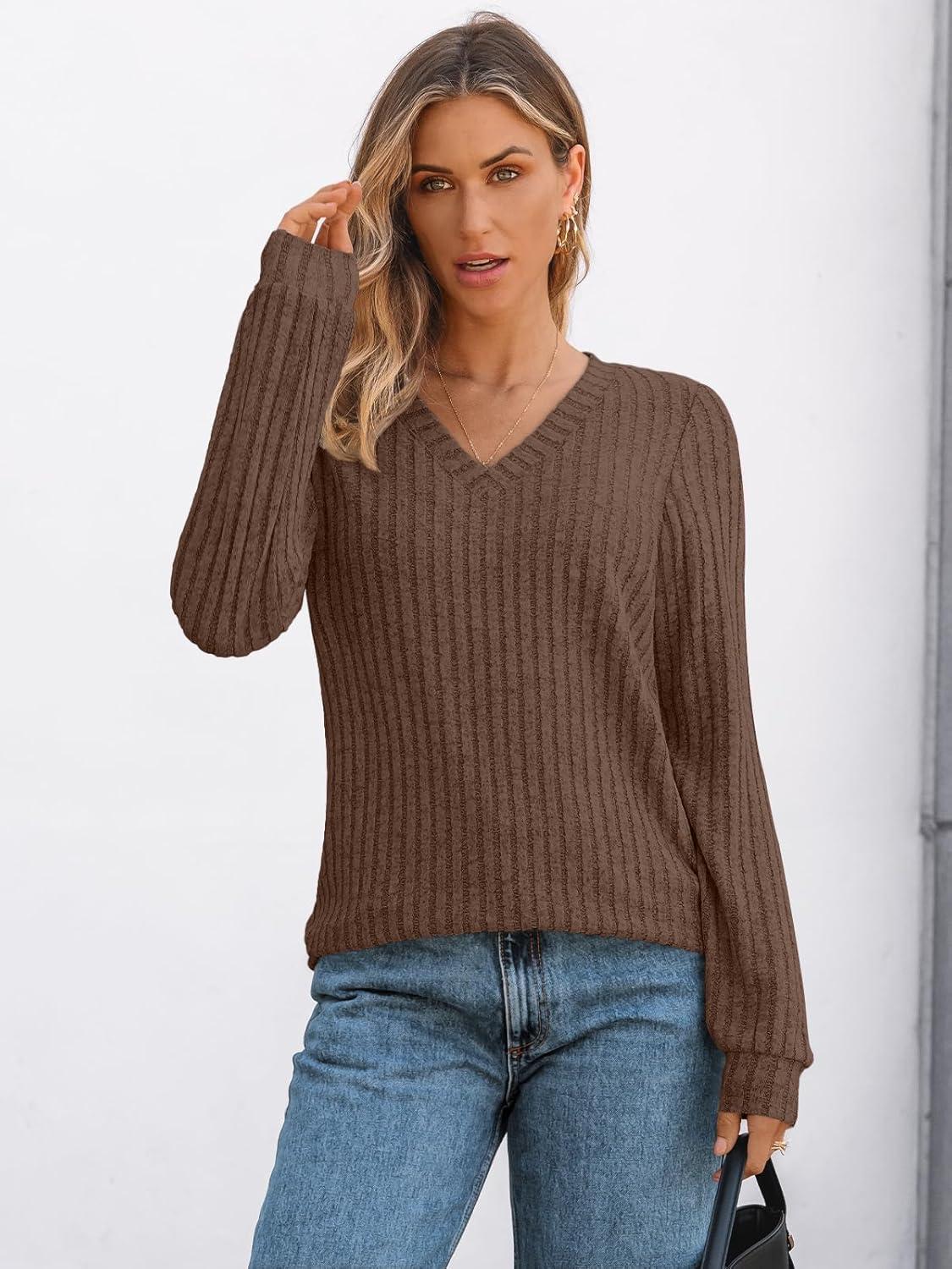 AUTOMET Womens V Neck Long Sleeve Shirt Fall Fashion Tops Tunic Dressy Casual Sweater Clothes Cute Trendy Work Outfits 2025(Chocolatebrown)