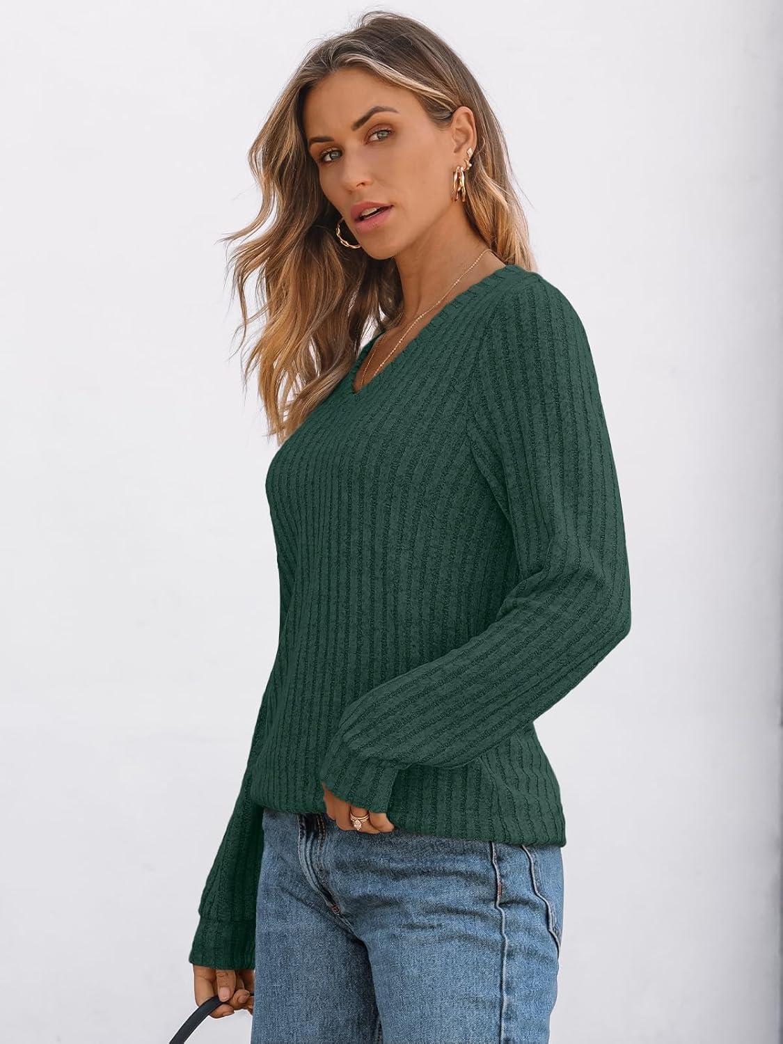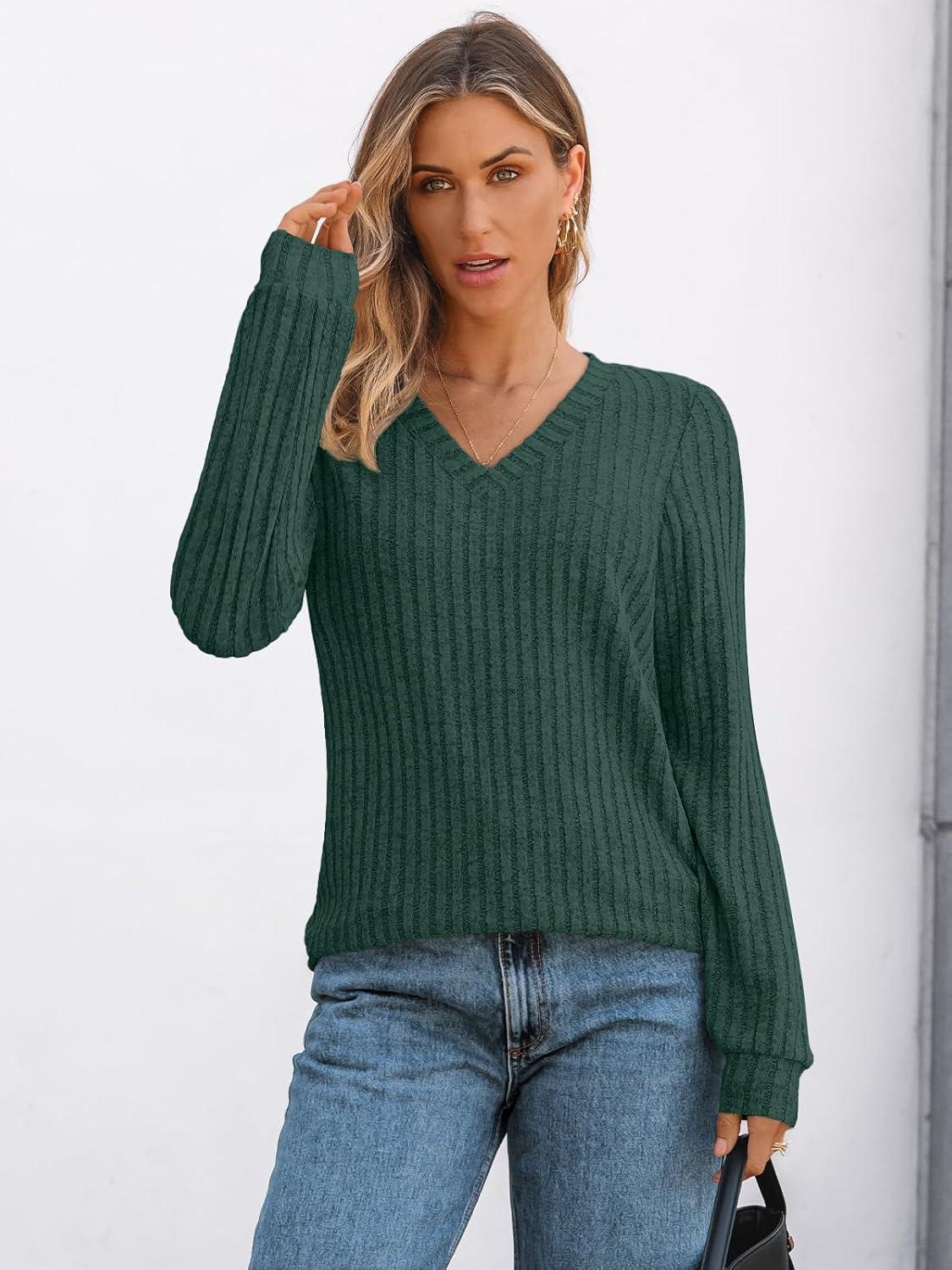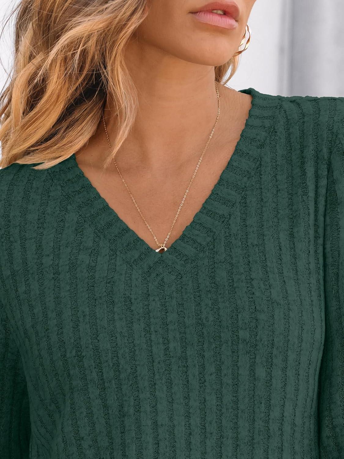 AUTOMET Womens V Neck Long Sleeve Shirt Fall Fashion Tops Tunic Dressy Casual Sweater Clothes Cute Trendy Work Outfits 2025(Deepgreen)