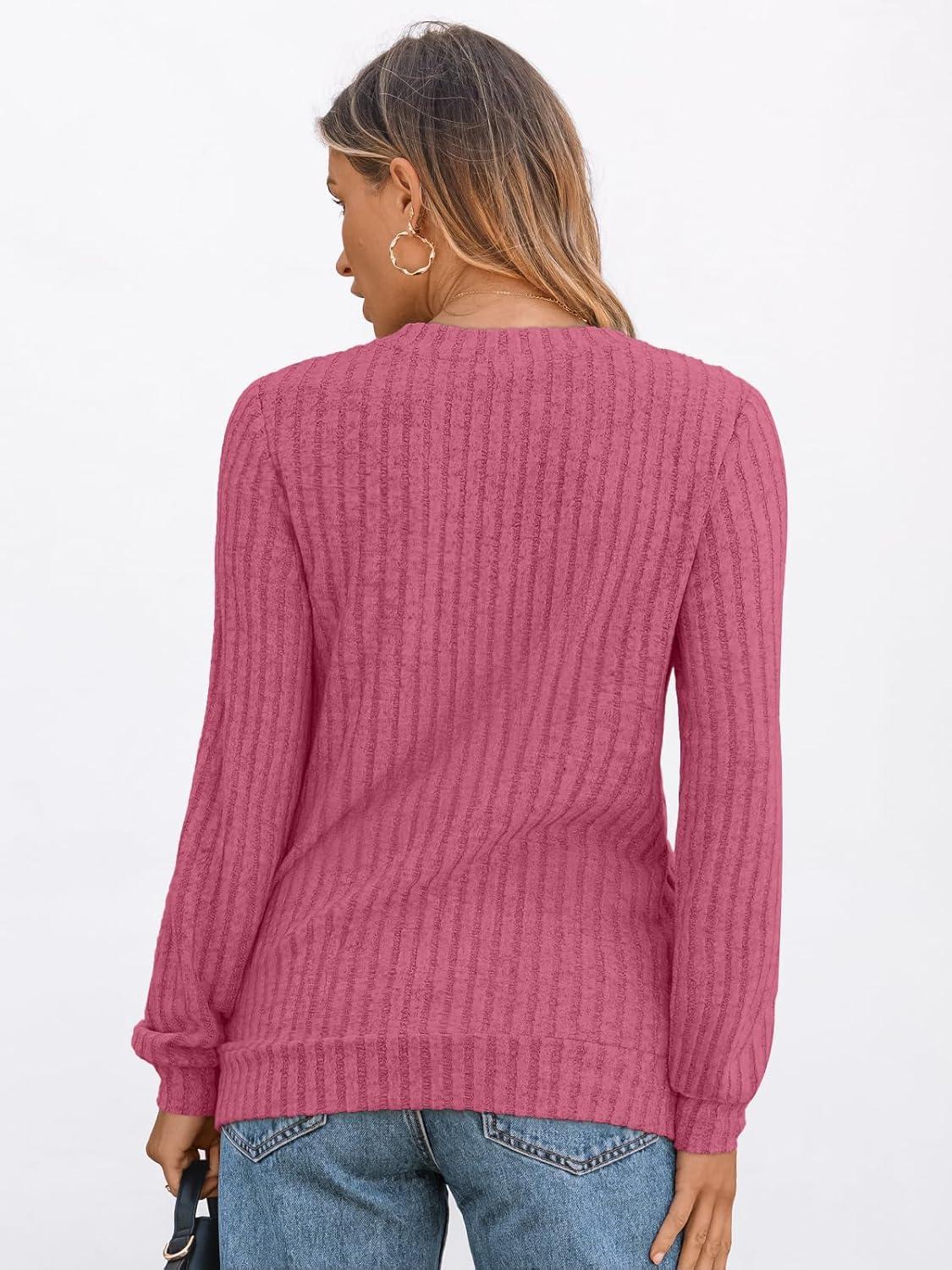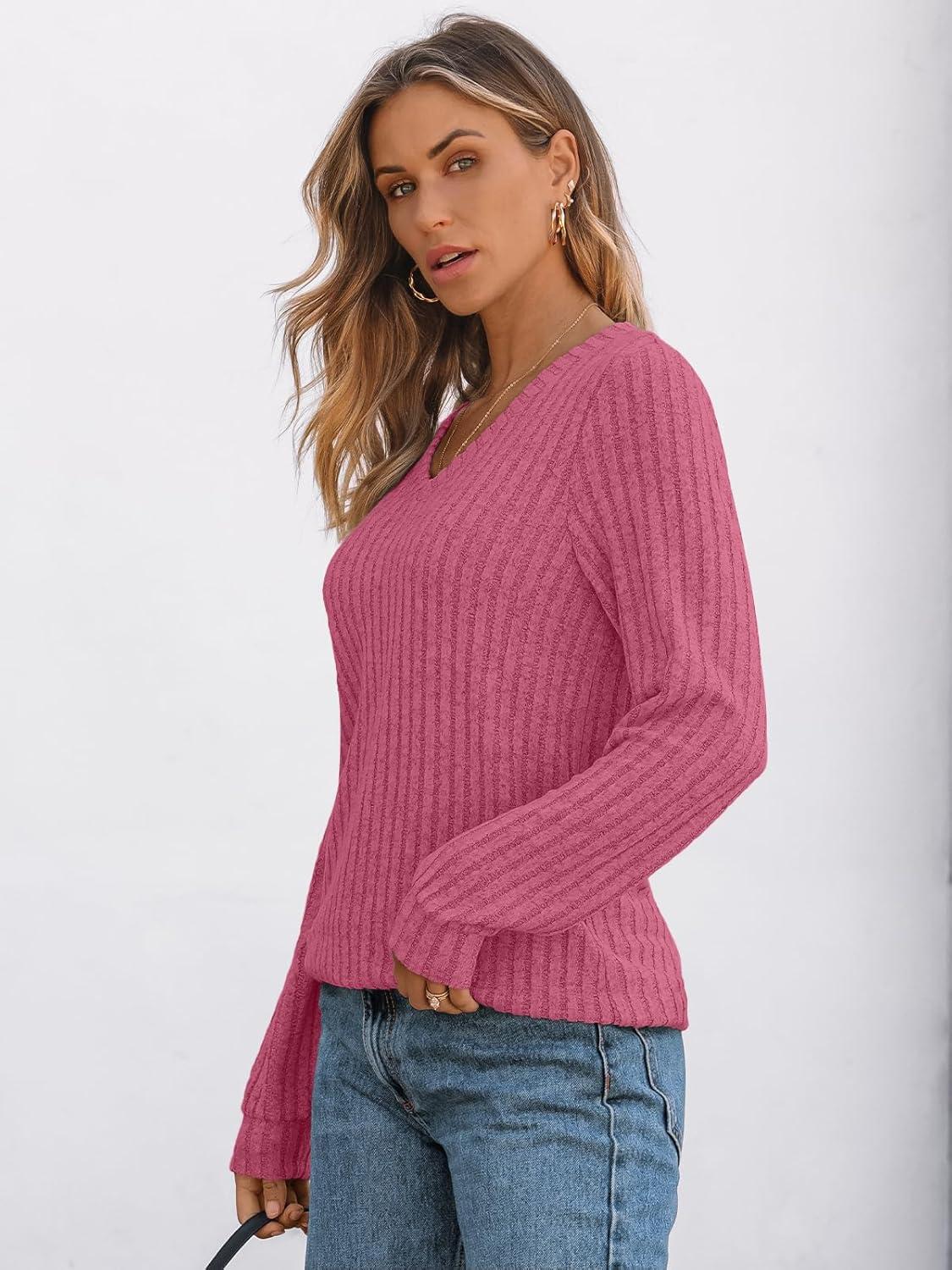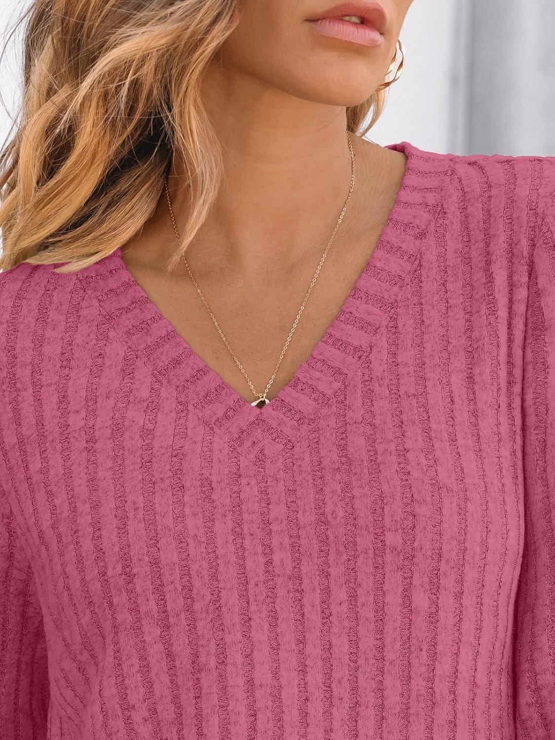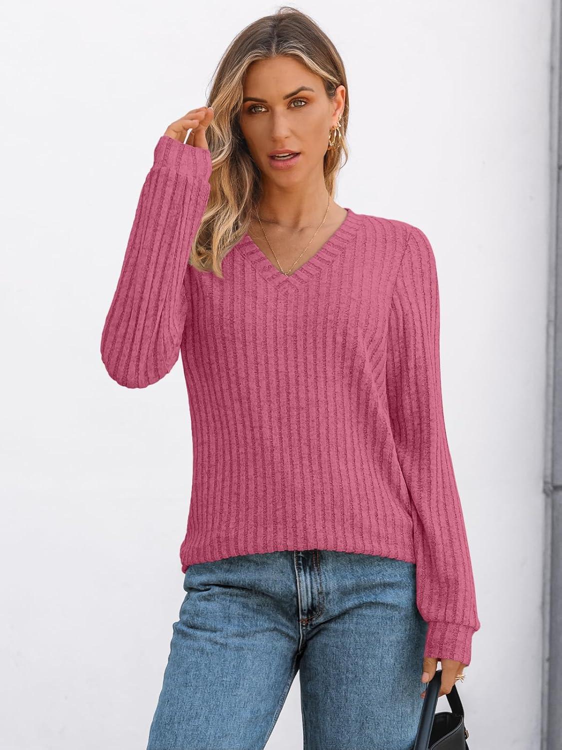 AUTOMET Womens V Neck Long Sleeve Shirt Fall Fashion Tops Tunic Dressy Casual Sweater Clothes Cute Trendy Work Outfits 2025(Rose)