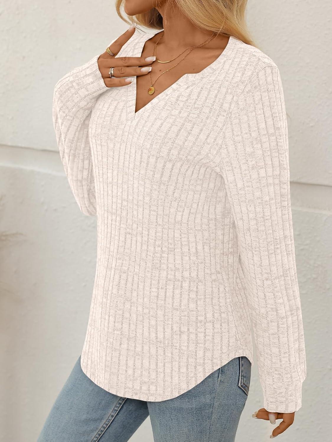 AUTOMET Womens V Neck Long Sleeve Shirts Casual Lightweight Tunic Sweaters Fall Fashion Tops Trendy Dressy Clothes 2025(Apricot)