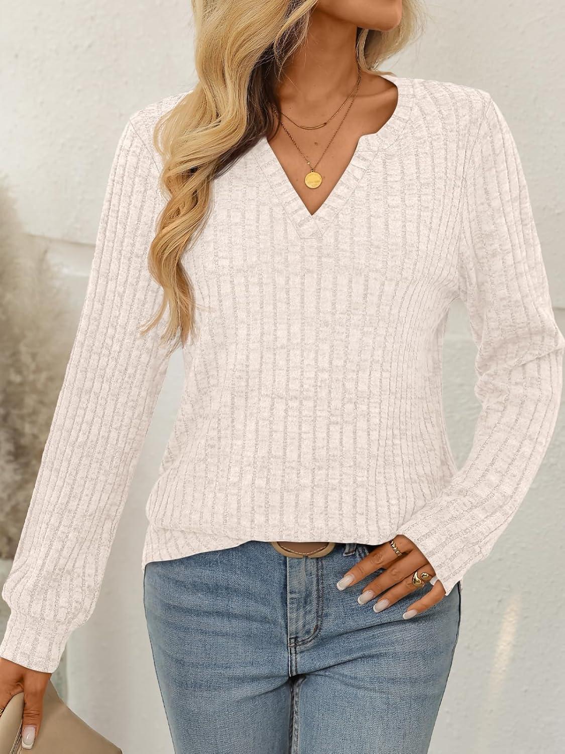 imageAUTOMET Womens V Neck Long Sleeve Shirts Casual Lightweight Tunic Sweaters Fall Fashion Tops Trendy Dressy Clothes 2025Apricot