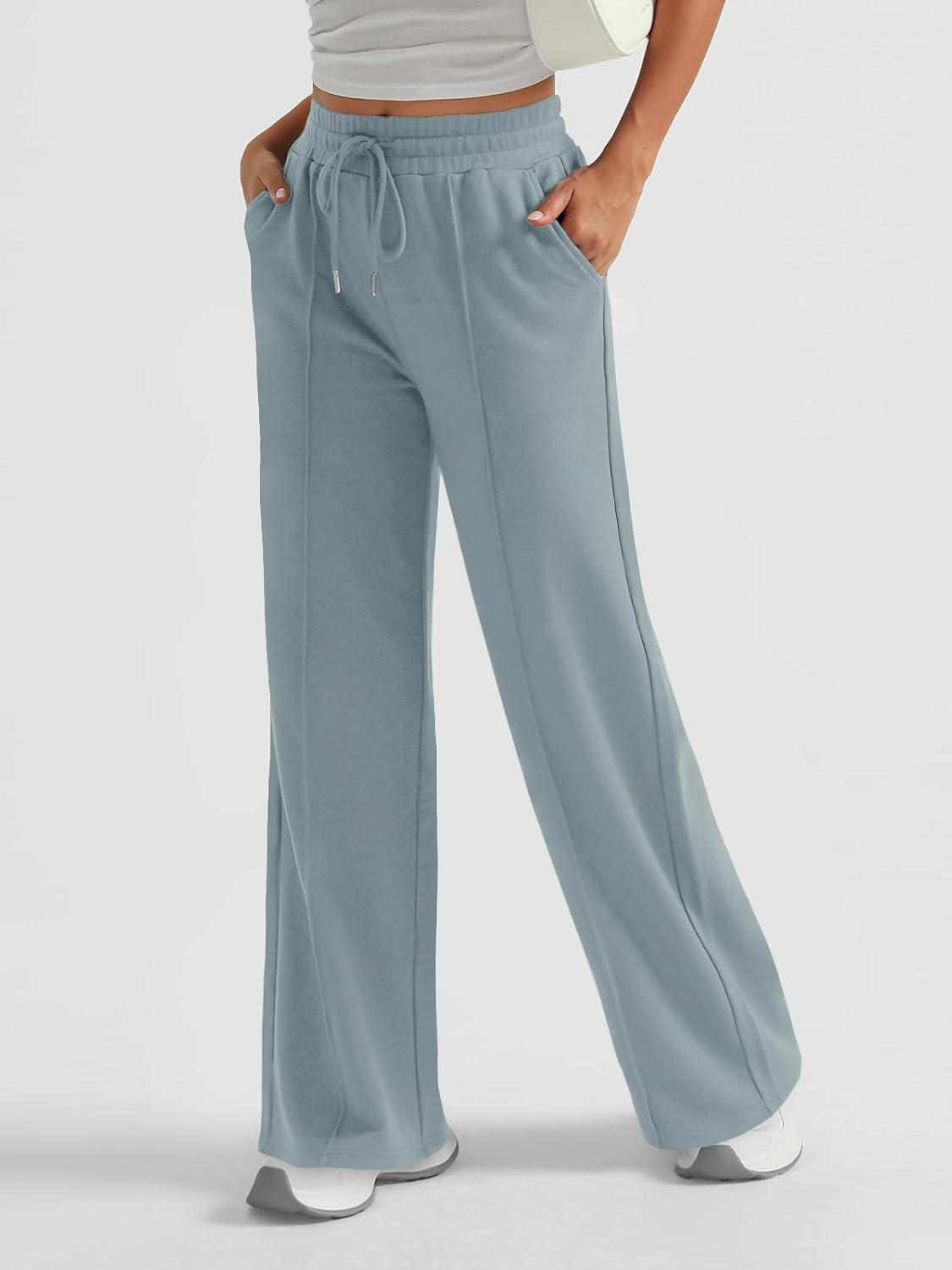 imageAUTOMET Womens Wide Leg Sweatpants Baggy Lounge Travel Pants Fall Fashion Outfits 2025 Winter Maternity Clothes JoggersGrey Blue