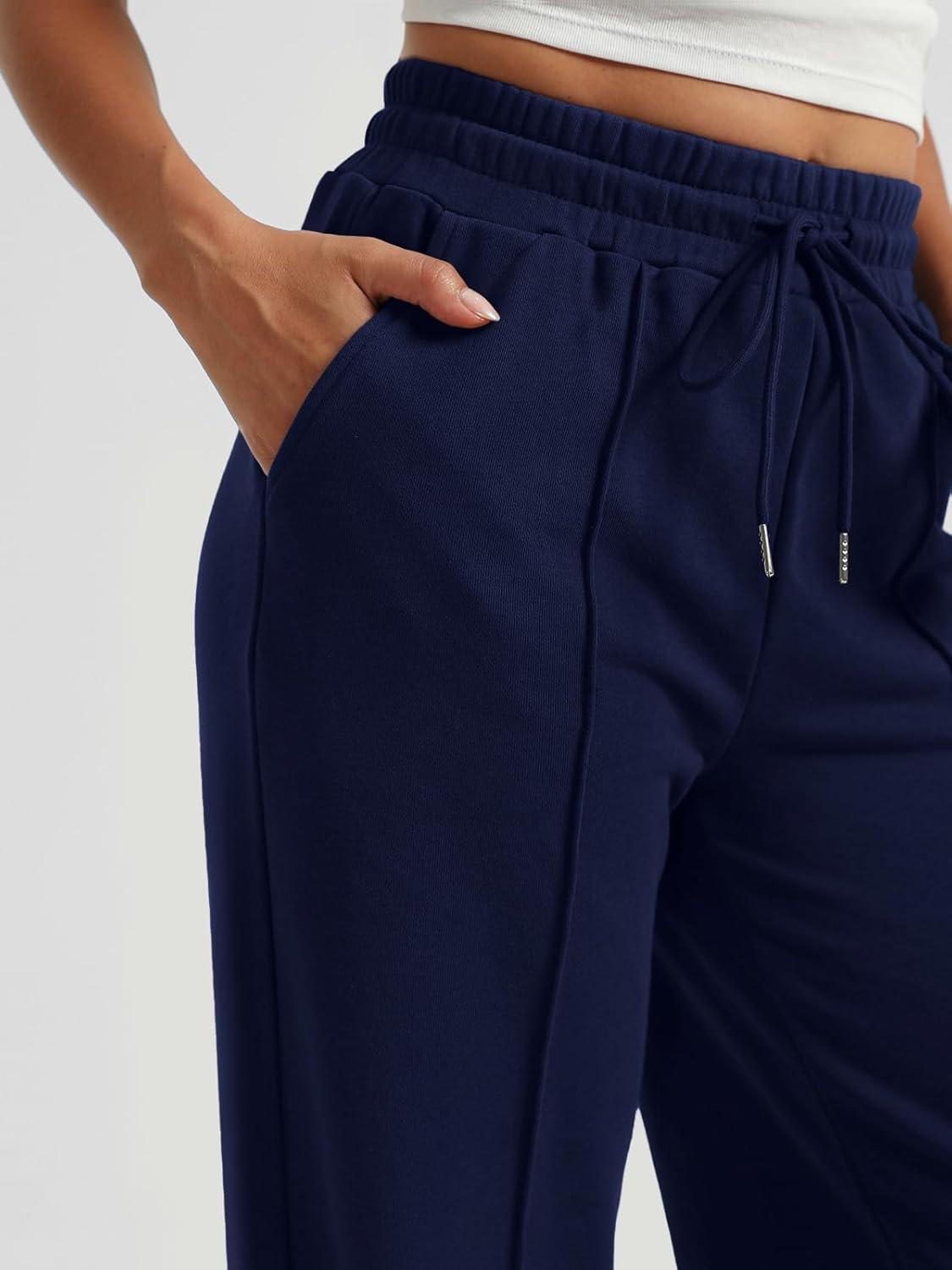 imageAUTOMET Womens Wide Leg Sweatpants Baggy Lounge Travel Pants Fall Fashion Outfits 2025 Winter Maternity Clothes JoggersNavy Blue