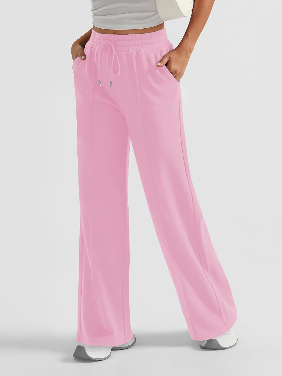 AUTOMET Womens Wide Leg Sweatpants Baggy Lounge Travel Pants Fall Fashion Outfits 2025 Winter Maternity Clothes Joggers(Pink)