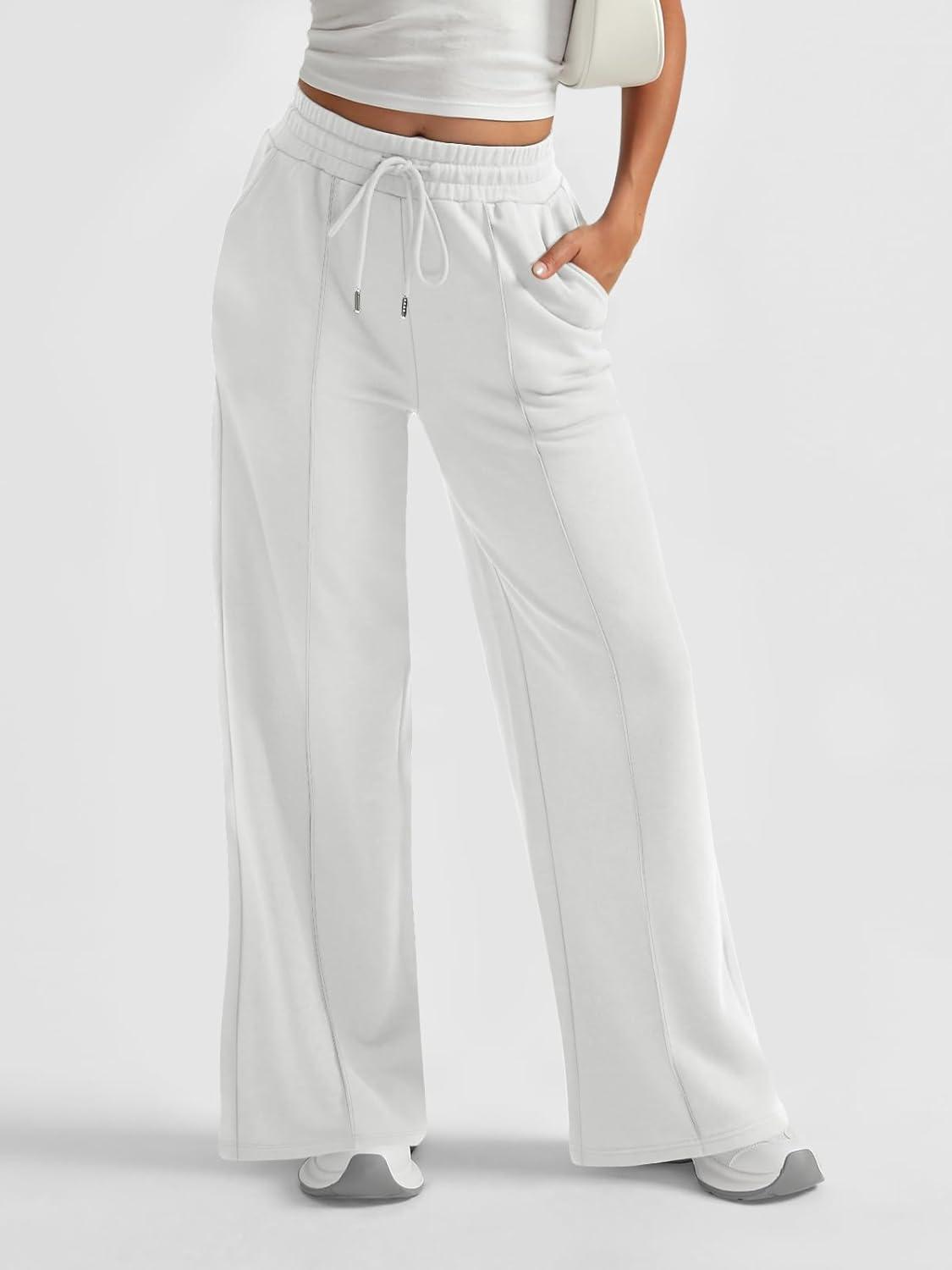 AUTOMET Womens Wide Leg Sweatpants Baggy Lounge Travel Pants Fall Fashion Outfits 2025 Winter Maternity Clothes Joggers(White)