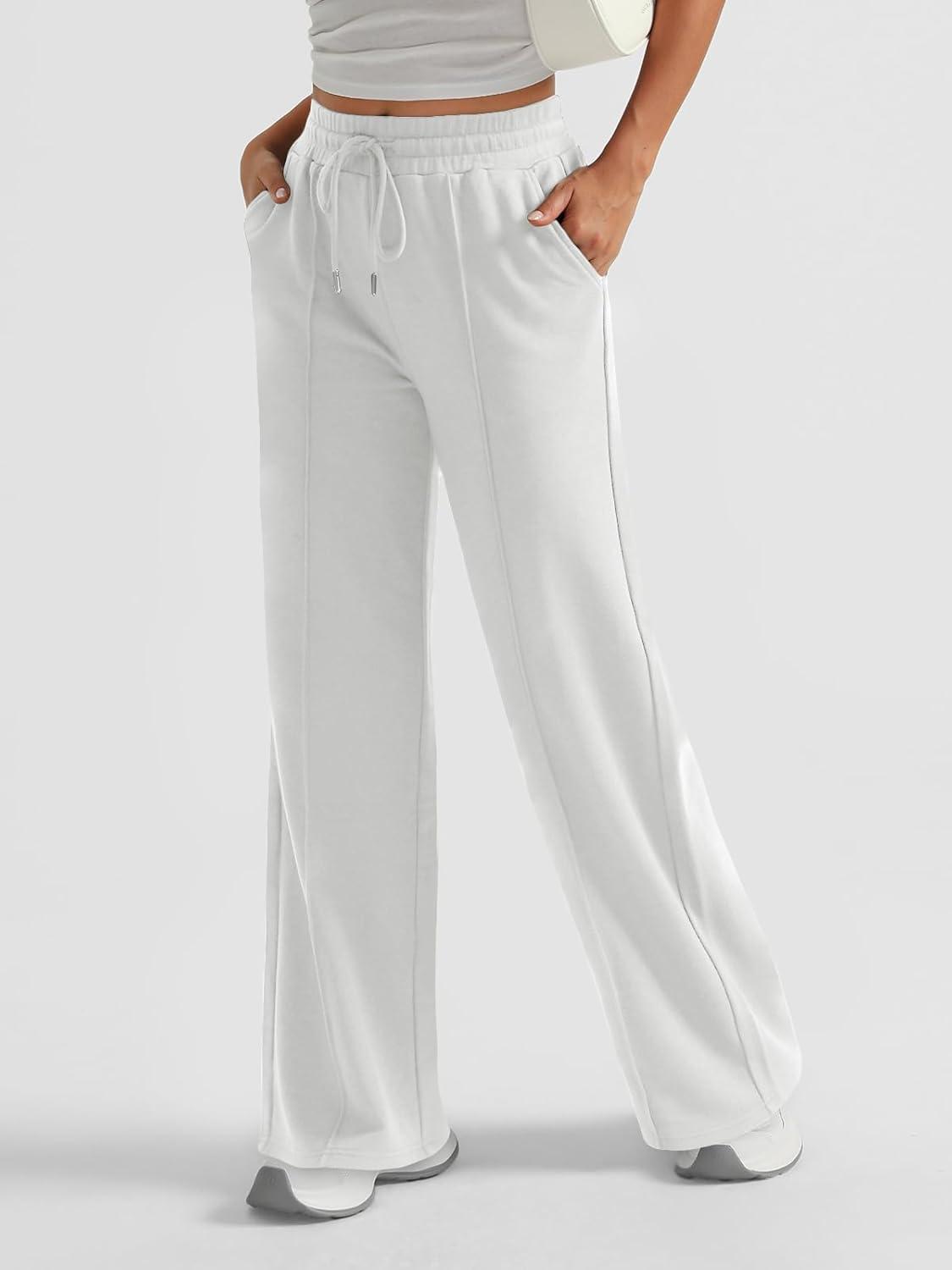 imageAUTOMET Womens Wide Leg Sweatpants Baggy Lounge Travel Pants Fall Fashion Outfits 2025 Winter Maternity Clothes JoggersWhite