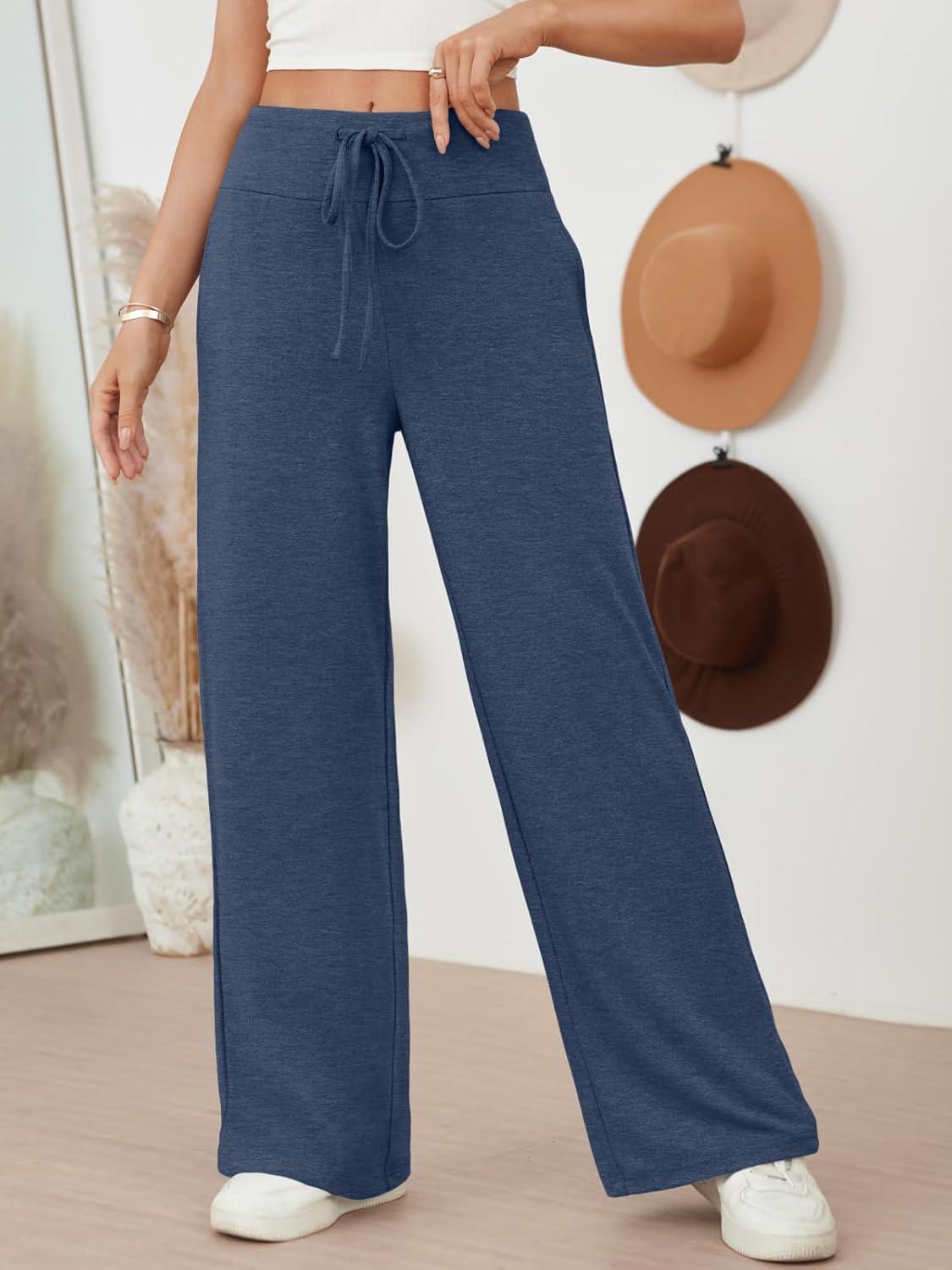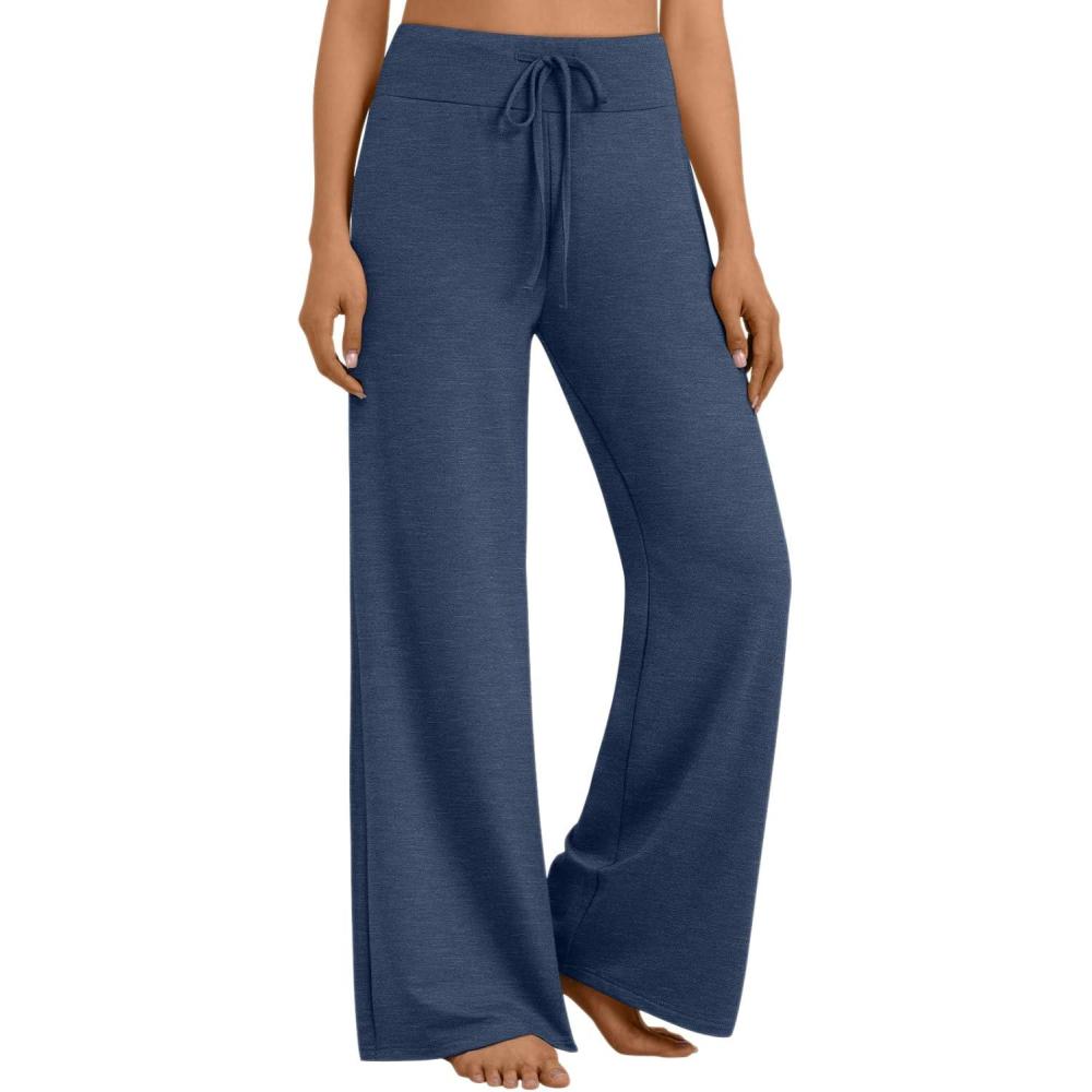AUTOMET Womes Wide Leg Sweatpants Pajama Pants Baggy Casual Lounge Yoga Pants High Waisted Bottoms Fall Clothes Trendy 2025(Navy)